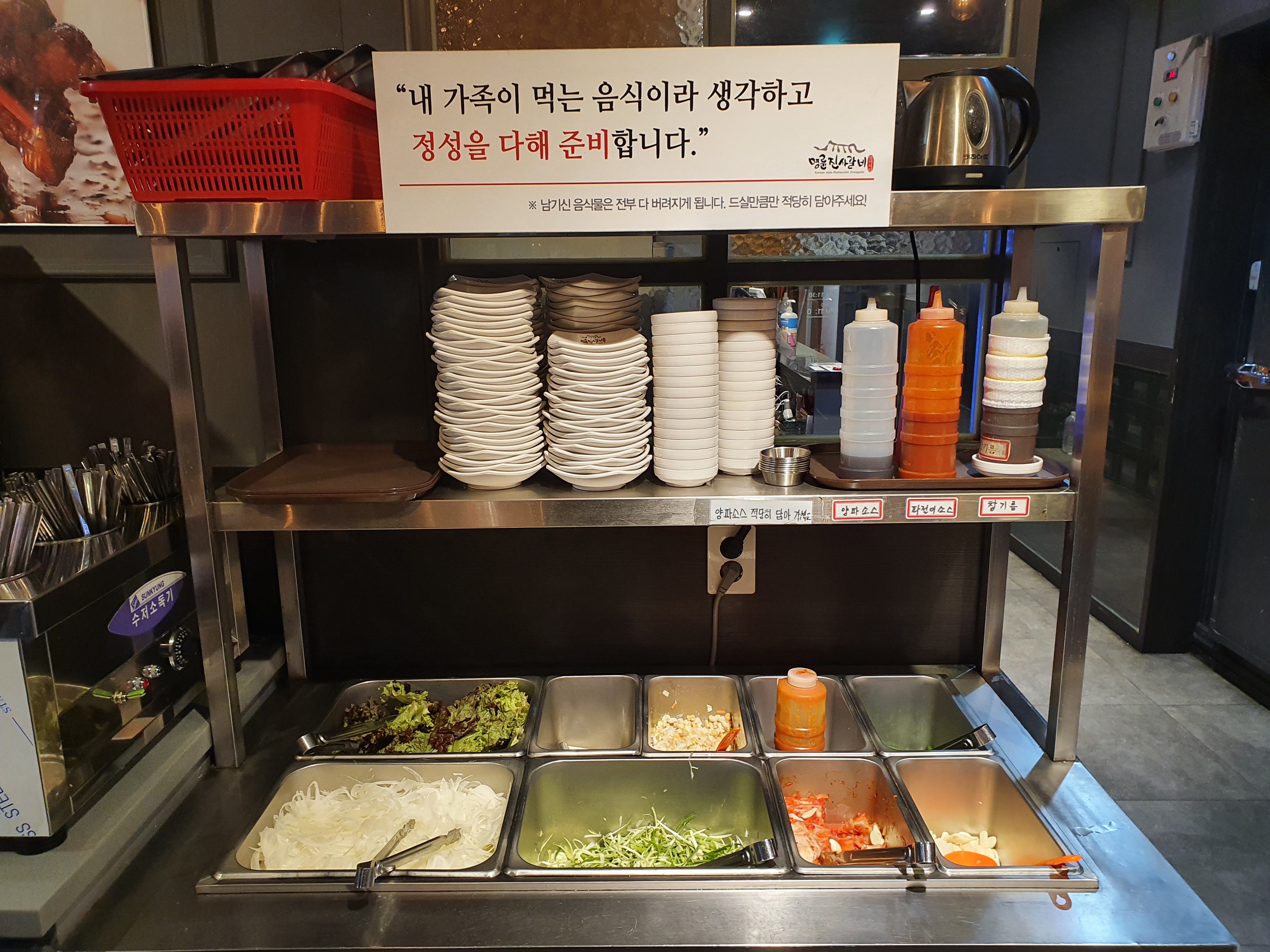 "필요한 수저는 리필 코너에서 셀프로 챙겨 오셔야 합니다."