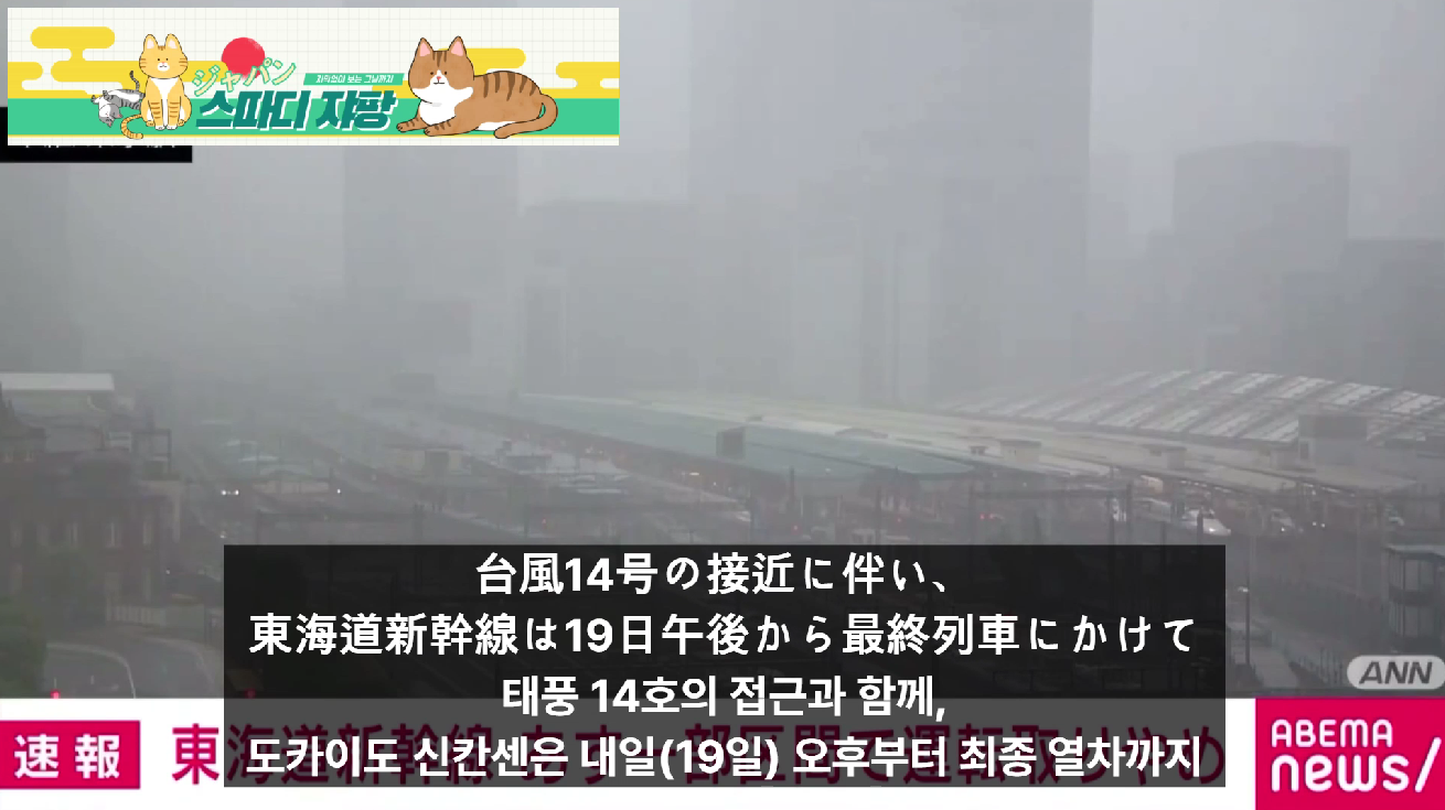 태풍 14호의 접근과 함께, 도카이도 신칸센은 내일(19일) 오후부터 최종 열차까지