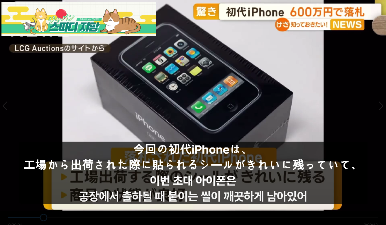 0:00 今回の初代(しょだい)iPhoneは、工場(こうじょう)から出荷(しゅっか)された際(さい)に貼(は)られるシールがきれいに残(のこ)っていて、