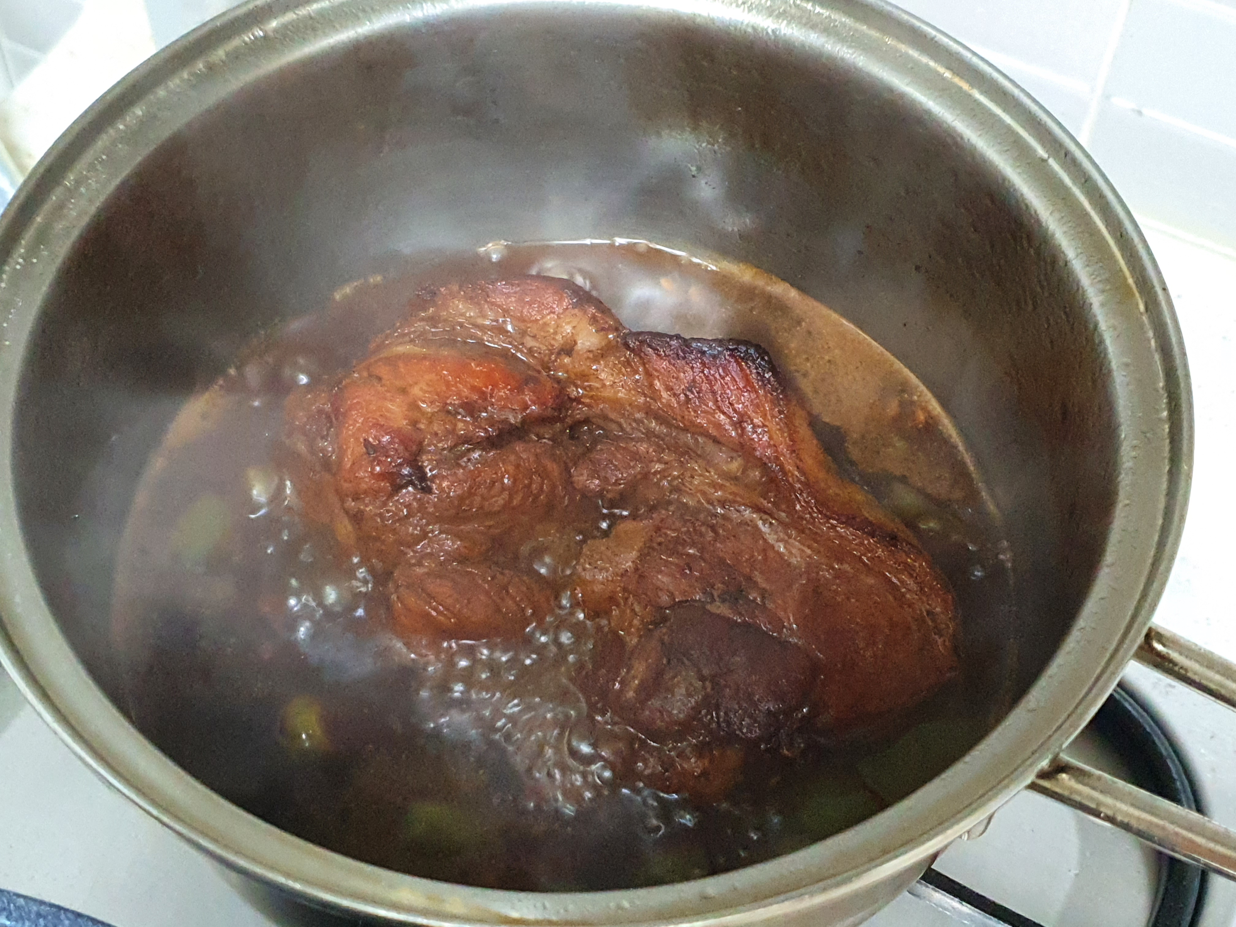 3. 다른 레시피를 보니 고기를 바스라지듯 부드럽게 하려면 수육할 때 1시간, 소스로 졸일 때 물을 500ml로 넉넉히 넣고 2시간 정도 삶아줘야 할 것 같다.