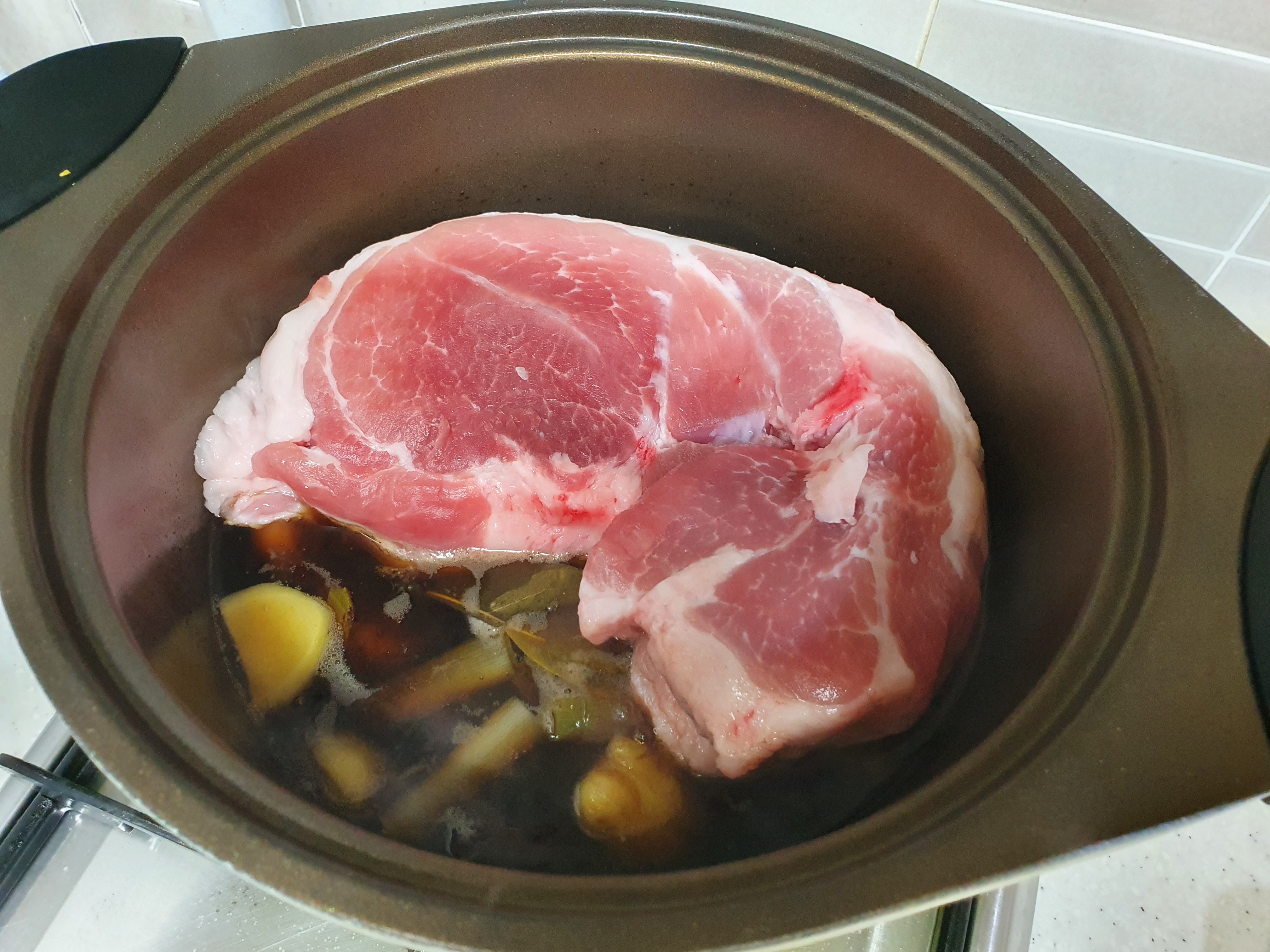 1. 돼지고기 300g, 콜라 500ml, 계피 1개(15cm), 월계수 잎 4~5장, 마늘 3쪽, 대파 1/2단, 생강 1개, 후추 10알을 넣고 30분분 정도 끓여준다.