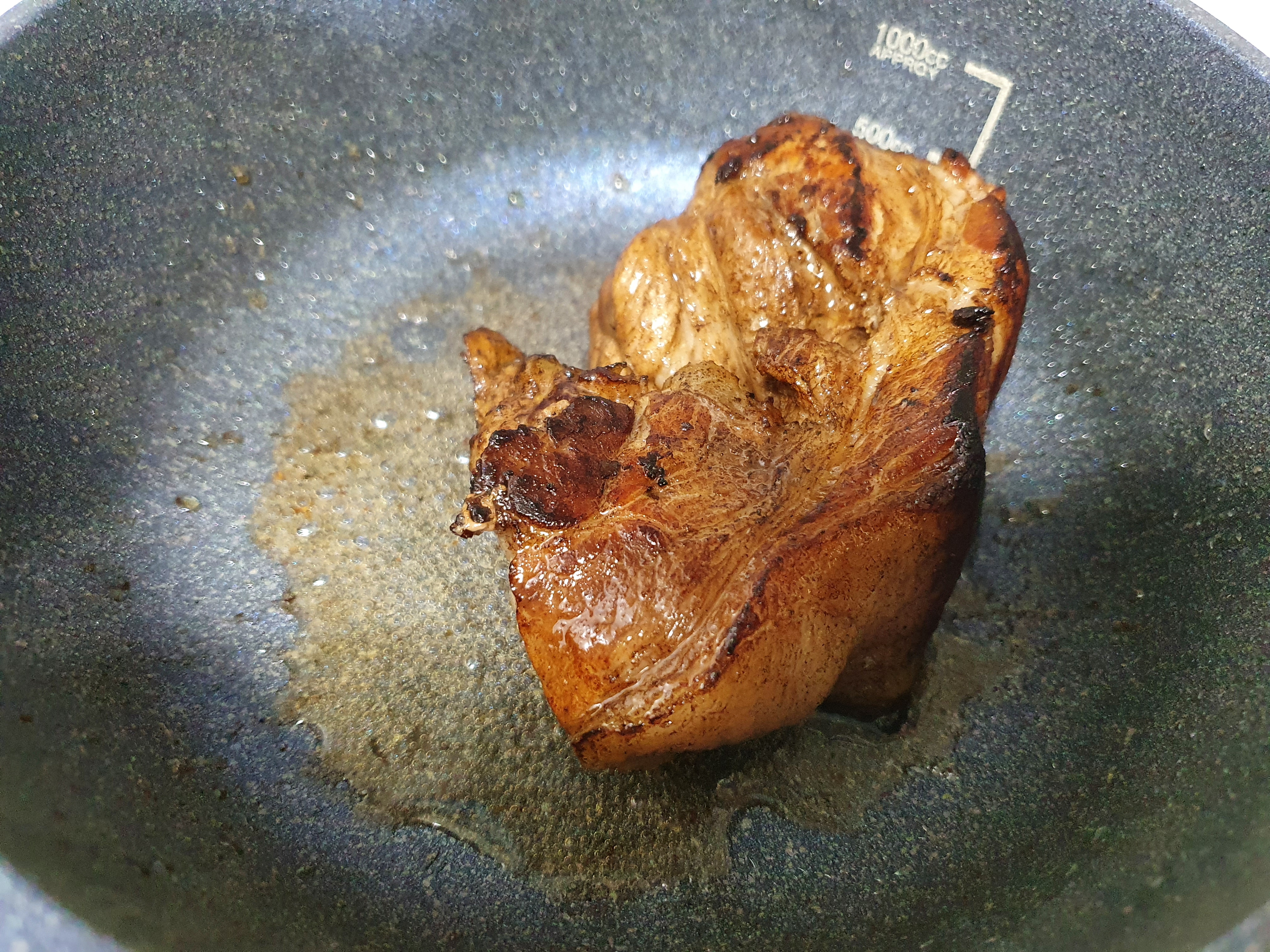 2. 삶은 고기는 당일 먹을 분량만 덜어, 팬에 겉면을 구워준다.