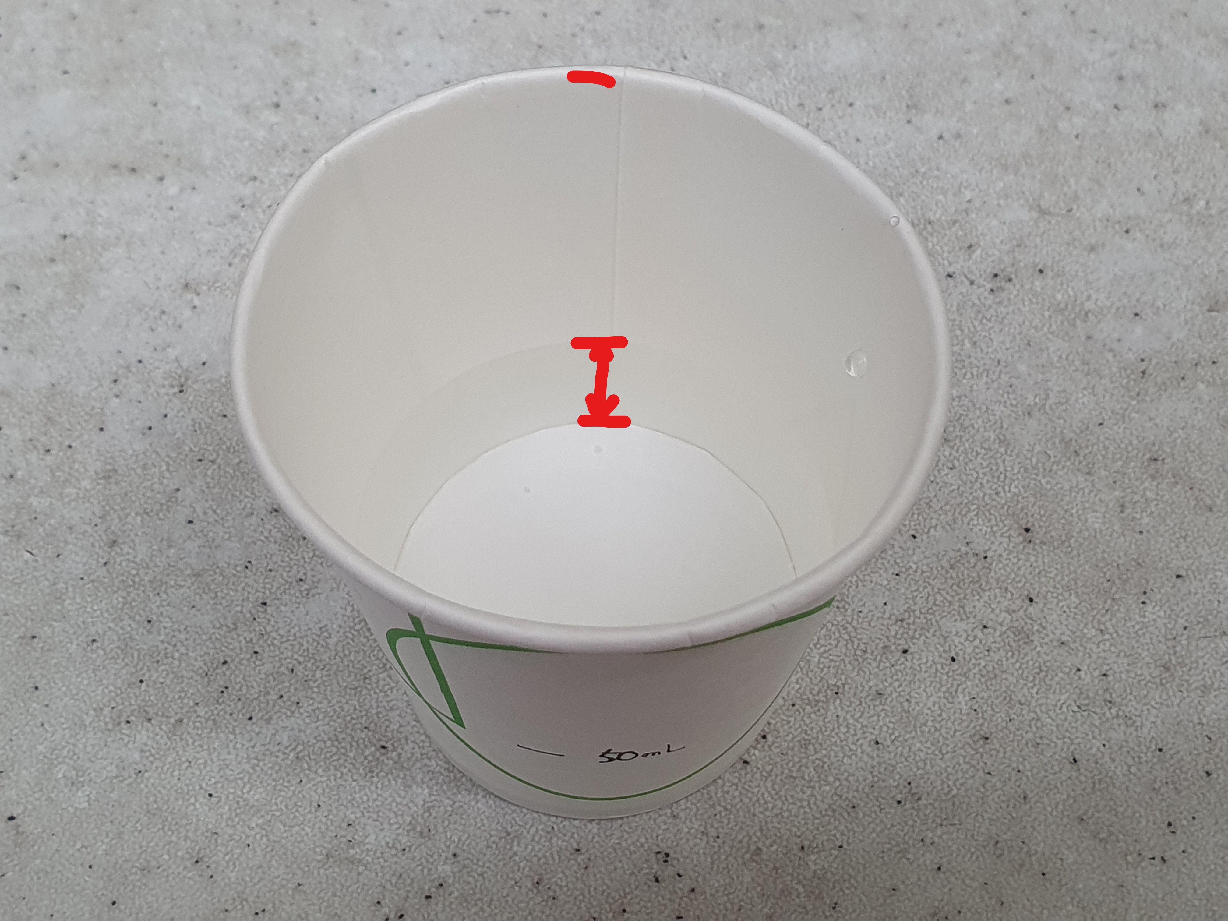 그럼 첫 번째 소결론, 종이컵은 "3컵 (위로 볼록하게) or 3컵(찰랑찰랑) + 1/3컵"입니다.