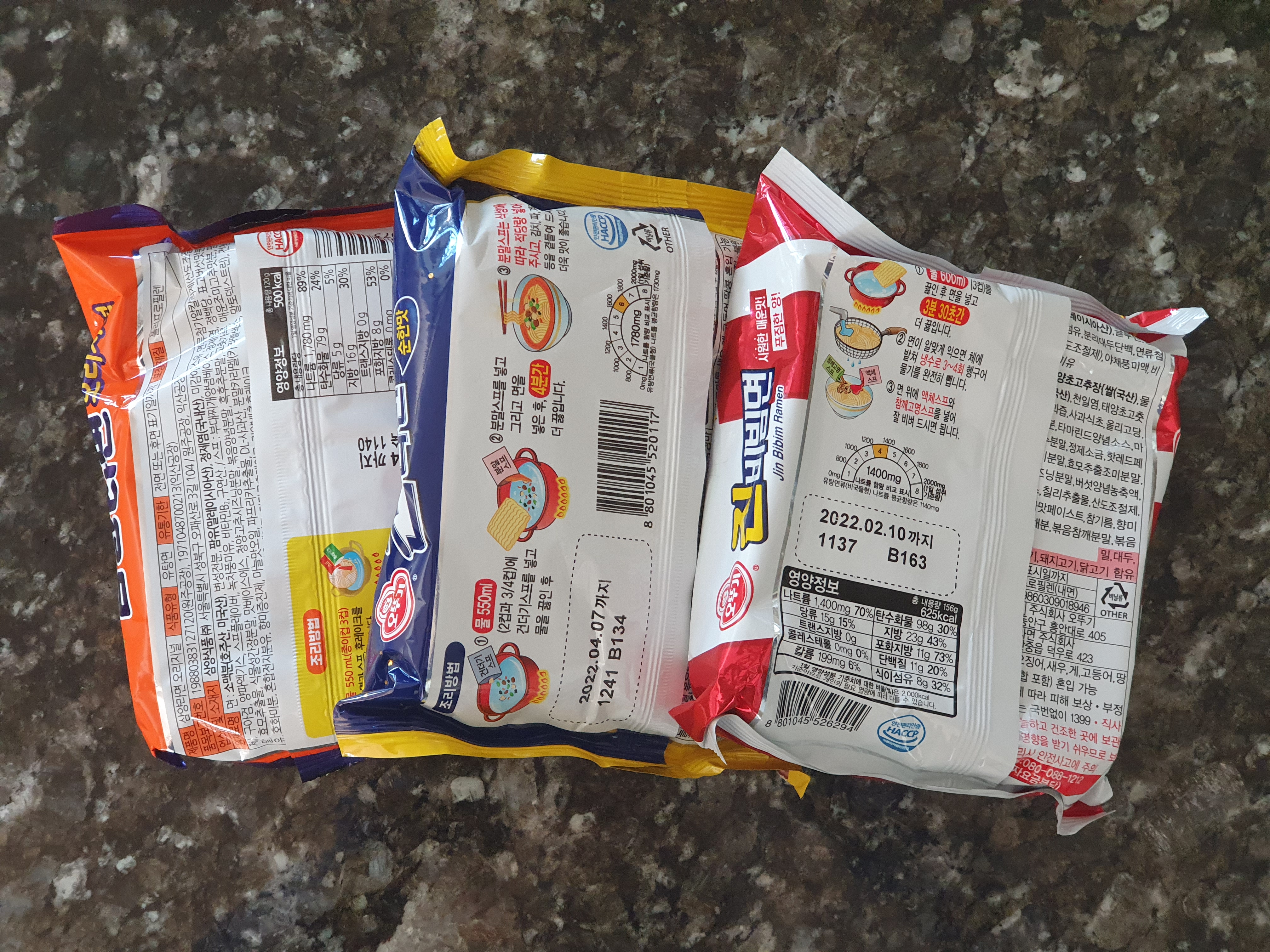 한국에 나오는 라면은 라면 봉지가 종류에 상관없이 크기가 균일합니다. 만약 다른 게 있다면 죄송합니다.